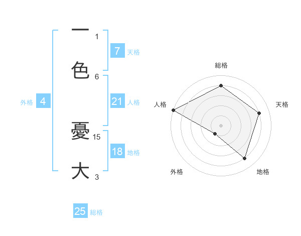 一色 憂大さんの総格は25画の4点!