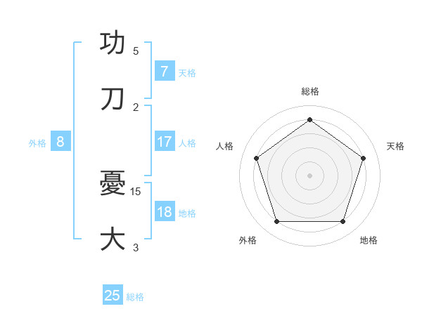 功刀 憂大さんの総格は25画の4点!