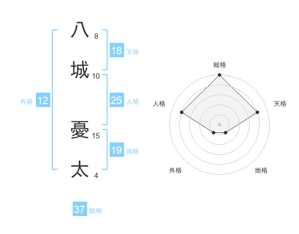 八城 憂太さんの総格は37画の5点!