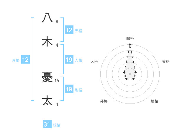 八木 憂太さんの総格は31画の5点!
