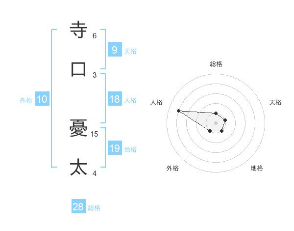 寺口 憂太さんの総格は28画の1点!