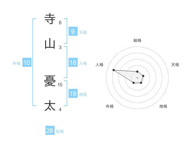 寺山 憂太さんを姓名の画数から五運を鑑定
