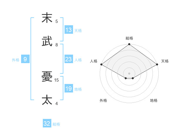 末武 憂太さんの総格は32画の5点!