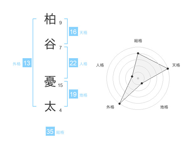 柏谷 憂太さんを姓名の画数から五運を鑑定