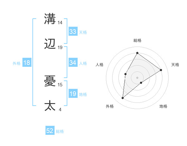 溝辺 憂太さんの総格は52画の4点!