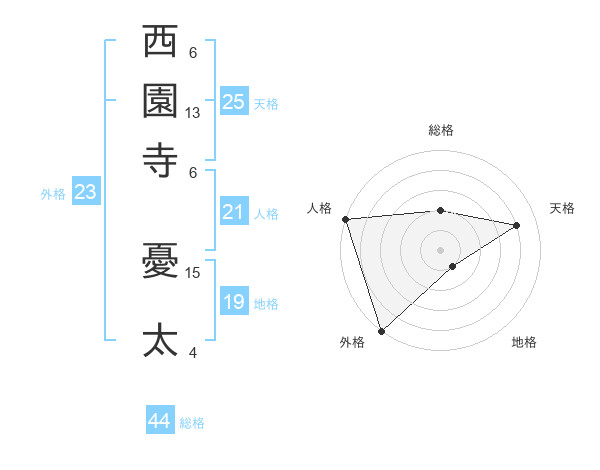 西園寺 憂太さんの地格は19画の1点!