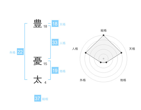 豊 憂太さんの総格は37画の5点!