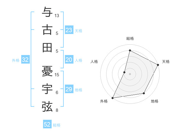 与古田 憂宇弦さんを姓名の画数から五運を鑑定