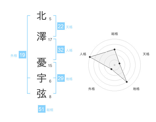 北澤 憂宇弦さんの総格は51画の3点!