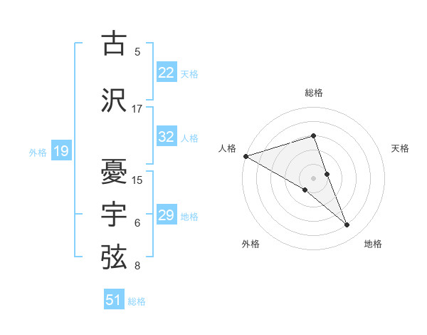 古沢 憂宇弦さんを姓名の画数から五運を鑑定
