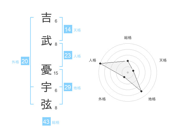 吉武 憂宇弦さんを姓名の画数から五運を鑑定