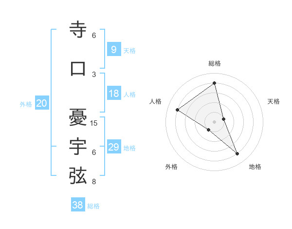 寺口 憂宇弦さんの総格は38画の4点!