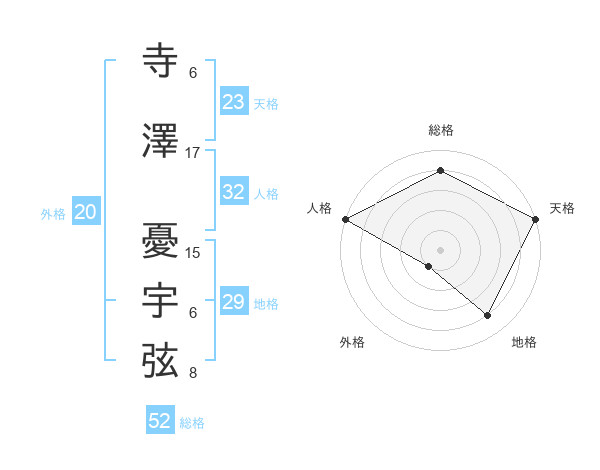 寺澤 憂宇弦さんを姓名の画数から五運を鑑定