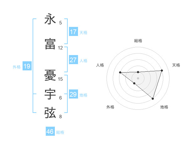 永富 憂宇弦さんを姓名の画数から五運を鑑定