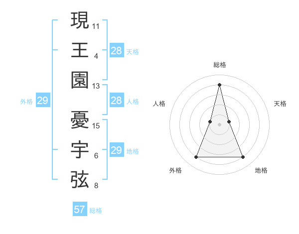現王園 憂宇弦さんの総格は57画の4点!