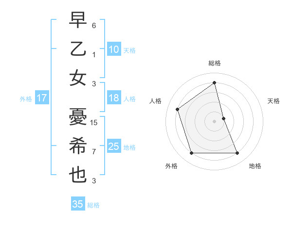 早乙女 憂希也さんの総格は35画の4点!