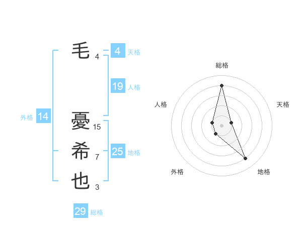 毛 憂希也さんの総格は29画の4点!