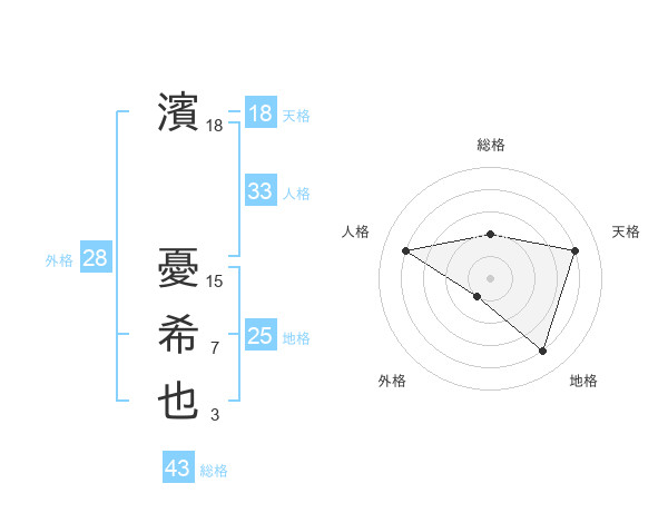 濱 憂希也さんを姓名の画数から五運を鑑定