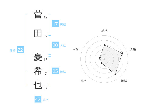 菅田 憂希也さんを姓名の画数から五運を鑑定
