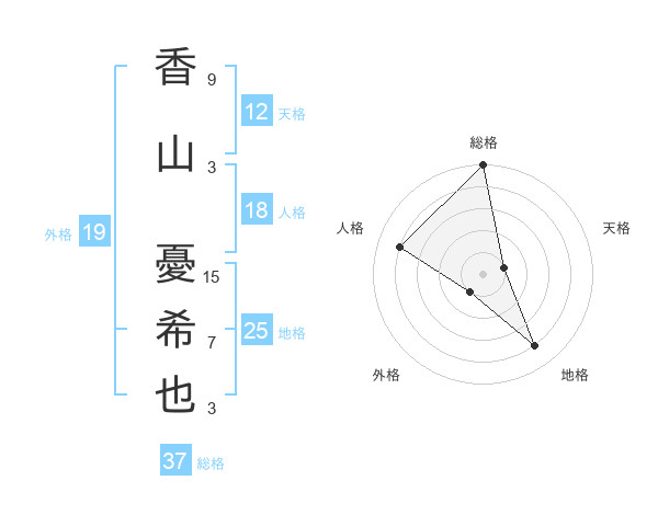 香山 憂希也さんを姓名の画数から五運を鑑定
