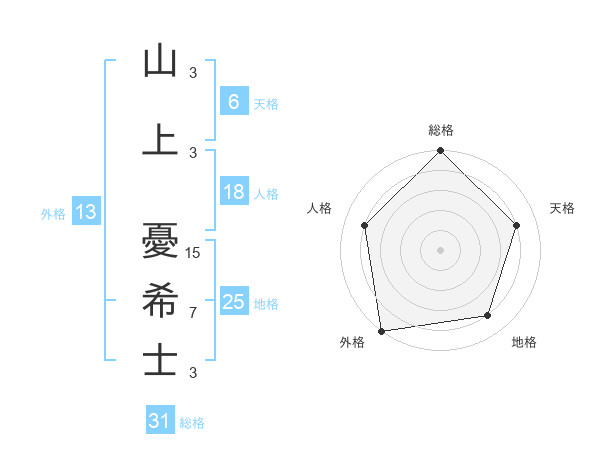 山上 憂希士さんを姓名の画数から五運を鑑定