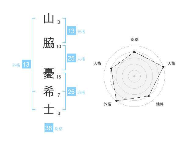 山脇 憂希士さんを姓名の画数から五運を鑑定