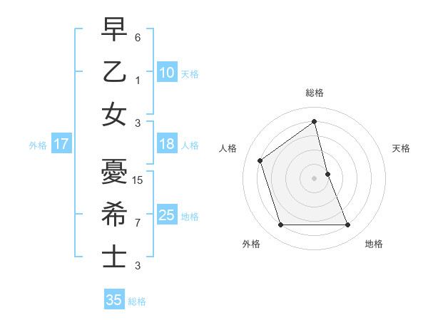 早乙女 憂希士さんを姓名の画数から五運を鑑定