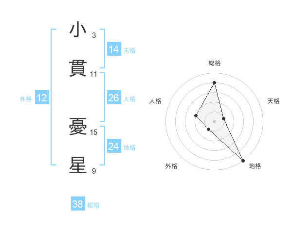小貫 憂星さんの総格は38画の4点!