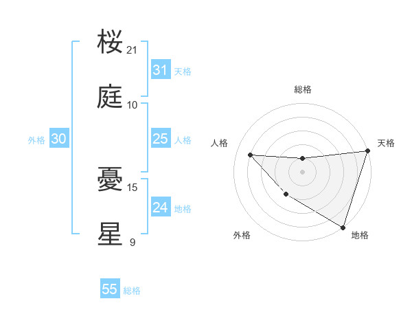 桜庭 憂星さんの地格は24画の5点!