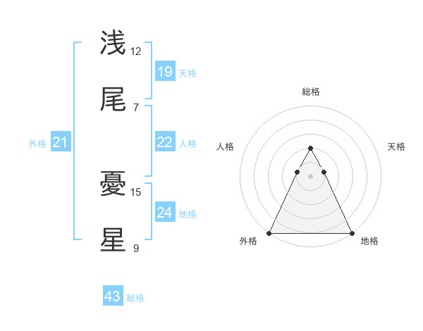 浅尾 憂星さんの外格は21画の5点!