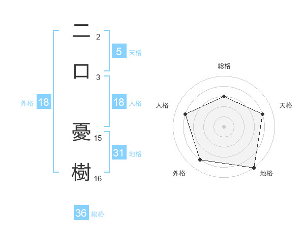 二口 憂樹さんを姓名の画数から五運を鑑定