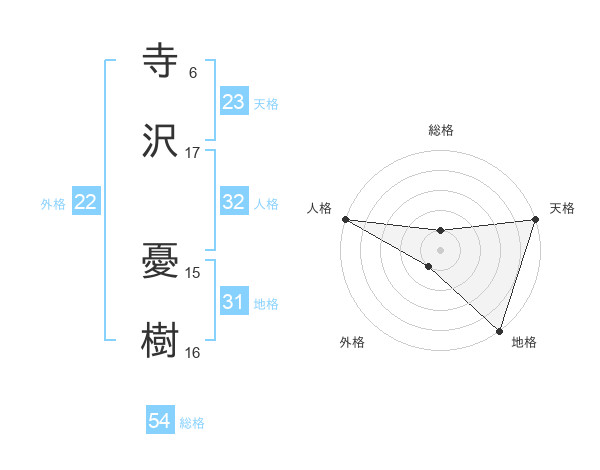 寺沢 憂樹さんの外格は22画の1点!