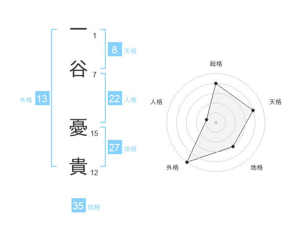 一谷 憂貴さんの総格は35画の4点!