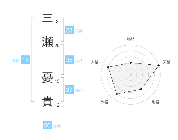 三瀬 憂貴さんの天格は23画の5点!