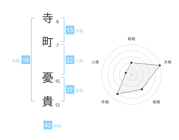 寺町 憂貴さんを姓名の画数から五運を鑑定