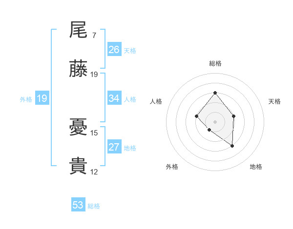 尾藤 憂貴さんを姓名の画数から五運を鑑定
