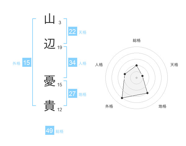 山辺 憂貴さんの総格は49画の2点!