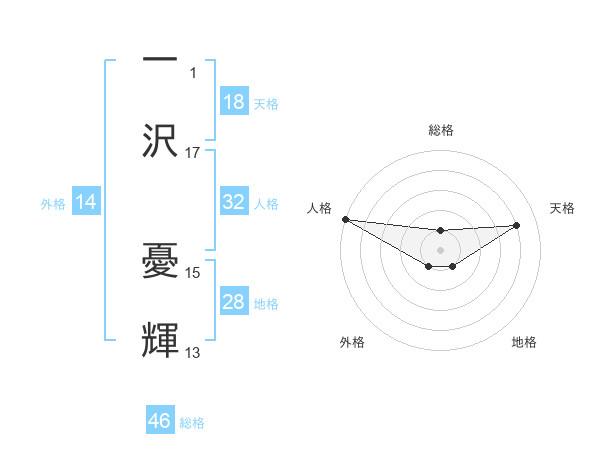 一沢 憂輝さんの外格は14画の1点!