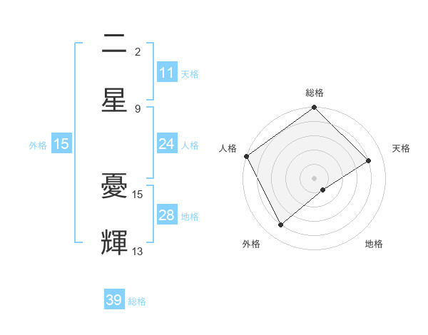 二星 憂輝さんの外格は15画の4点!