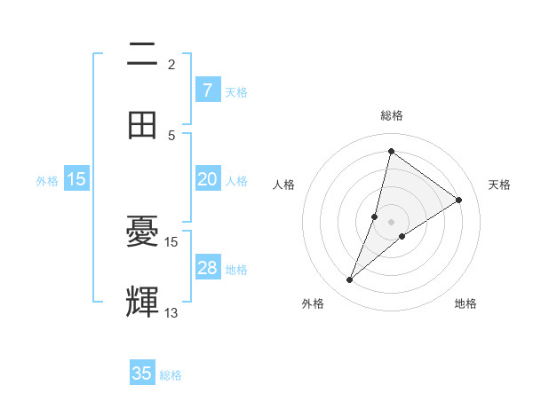 二田 憂輝さんを姓名の画数から五運を鑑定