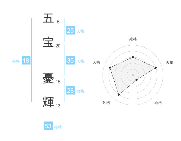 五宝 憂輝さんを姓名の画数から五運を鑑定