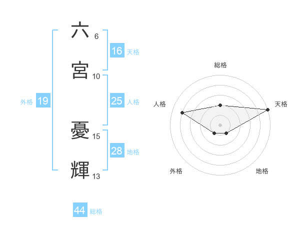 六宮 憂輝さんを姓名の画数から五運を鑑定