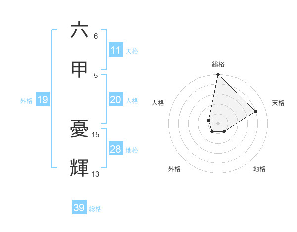 六甲 憂輝さんの外格は19画の1点!