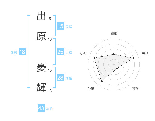 出原 憂輝さんを姓名の画数から五運を鑑定