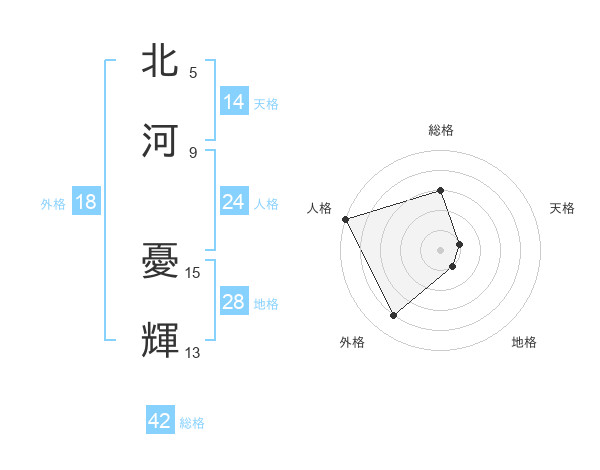 北河 憂輝さんの天格は14画の1点!