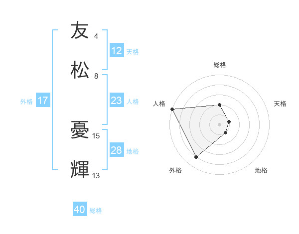 友松 憂輝さんを姓名の画数から五運を鑑定