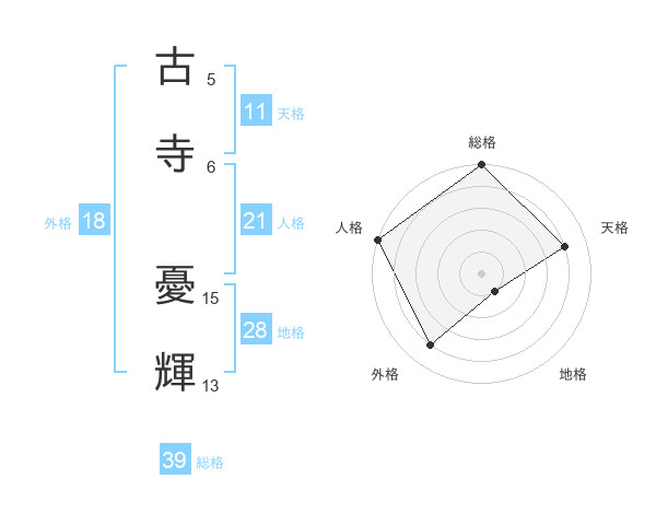 古寺 憂輝さんを姓名の画数から五運を鑑定