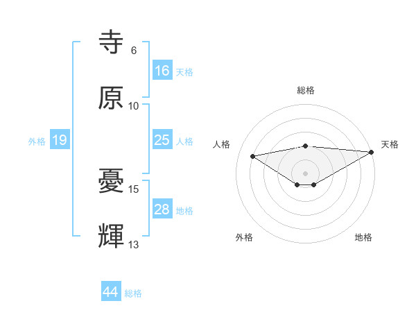 寺原 憂輝さんを姓名の画数から五運を鑑定