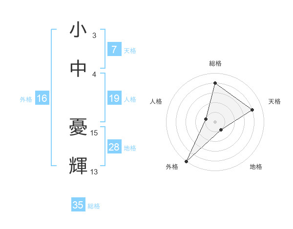 小中 憂輝さんを姓名の画数から五運を鑑定