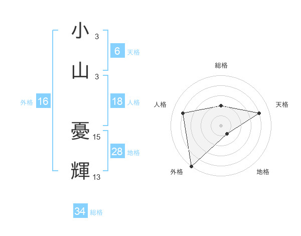 小山 憂輝さんを姓名の画数から五運を鑑定